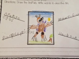 This week we are exploring story elements.  Today we read the story, The Gruffalo by Julia Donaldson  If you haven’t read this story, do it!  It is fantastic for describing character traits.