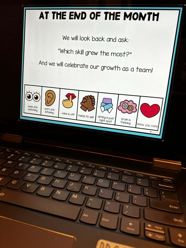 Morning meeting is one of the most natural places to embed behavior review because it’s already built for discussion and community. Instead of treating it as a separate “behavior reset,” simply spotlight one routine per day.