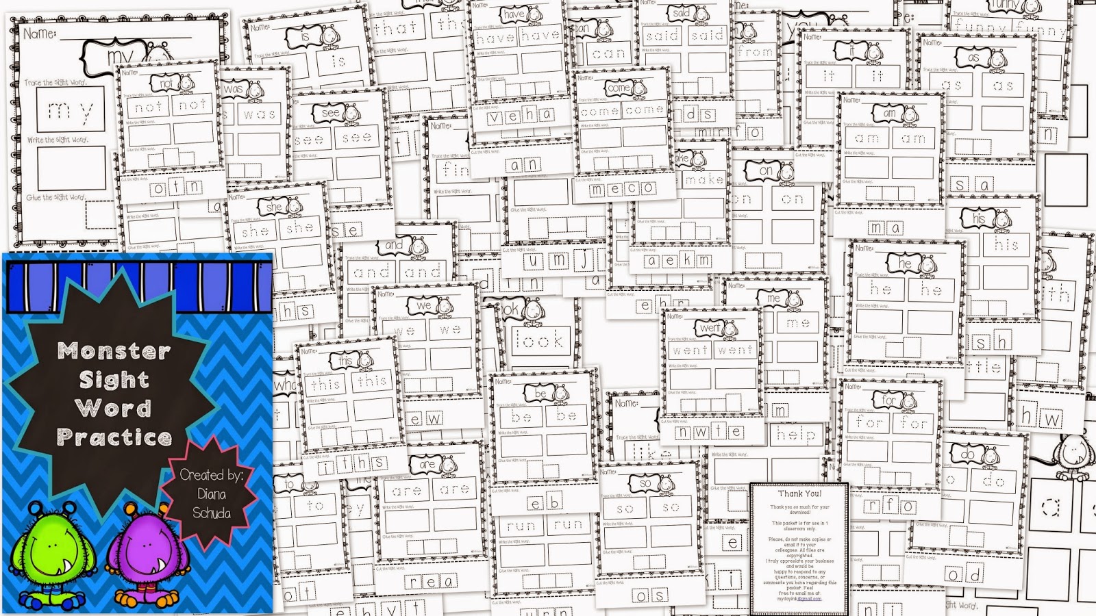 Monster Sight Word Practice practices high frequency words. Use it as an extra activity, send home to practice, or in small group instruction.