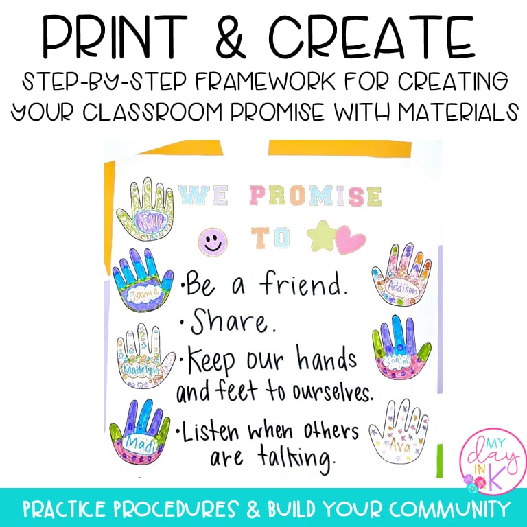 Instead of handing out a list of rules, involve students in creating a Classroom Promise. The slides guide you through discussing what kind of classroom everyone wants, brainstorming behaviors that will help make it happen, and writing it up together. Post the promise on your wall and revisit it often; it becomes the heart of your classroom culture.